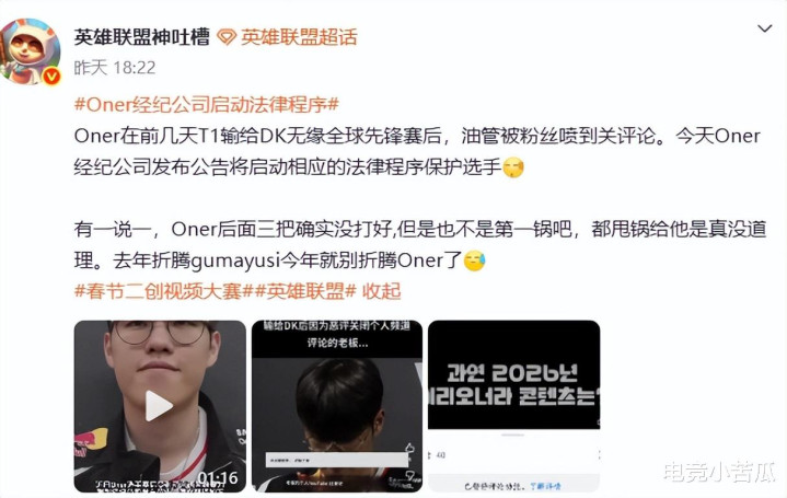 赛后Oner承担了所有,接受采访,接受批评,主要是那一把的超神亚恒都输了,确实意外,当时DK的中野都被打的捂脸了,还以为T1会拿下胜利的,结果被极限翻盘了,确实要人背锅啊,只有Oner了,健身的人,承压能力都强。不过后续都忍不住了,关了评论功能,舆论太可怕了。